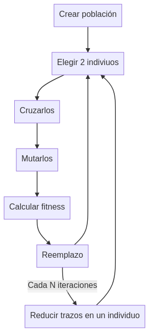 Una vez tenemos definidos los individuos hay que definir sus operaciones de cruce, de mutación y de reemplazo.