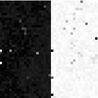 Cada uno de los individuos del mundo se crean con un valor entre 0 y 127. Esto se hace así para que haya un gen, el de mayor peso (gen 7), que este a 0 en todos ellos. La idea es que ese gen solo se puede poner a 1 a través de una mutación. Visualmente significa que solo puede haber cuadrados entre negro y gris claro. Para que haya cuadrados blancos tiene que producirse una mutación.