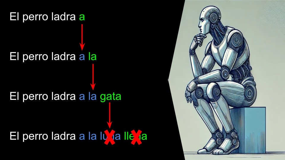 Para entender mejor cómo funciona, imaginemos un ejemplo: supongamos que queremos completar la frase «El perro ladra». Antes de que el modelo principal comience a generar una respuesta, le pedimos al oráculo que intente predecir lo que va a decir. Supongamos que el oráculo predice: «El perro ladra a la luna llena».