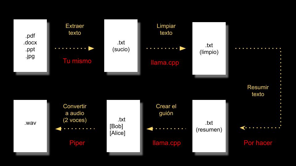 Hace no mucho Google sacó una herramienta que permite crear podcasts donde dos IAs discuten sobre el texto que les pasas. Meta no hace mucho sacó su propia versión usando Llama que se puede usar en local. Aquí presento mi idea, con código para que podáis jugar vosotros.