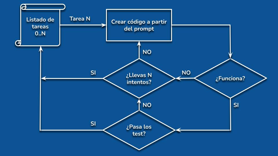 Una de las claves para que el vibe coding funcione realmente bien es organizarse con un flujo claro. No se trata solo de pedirle cosas a la IA y esperar milagros, sino de establecer un proceso iterativo y controlado. Este sería un flujo básico que puedes seguir: